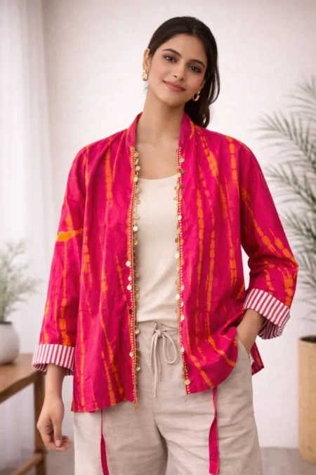The Kantha Jacket merges tradition with modern style, offering a unique blend of comfort and artistry. Crafted from hand-stitched, lightweight fabric, this jacket is perfect for layering, ensuring warmth without compromising on style. It features a flattering silhouette that fits various body types and adds a vibrant touch to any outfit. Ideal for both casual outings and professional settings, the Kantha Jacket is as versatile as it is beautiful.